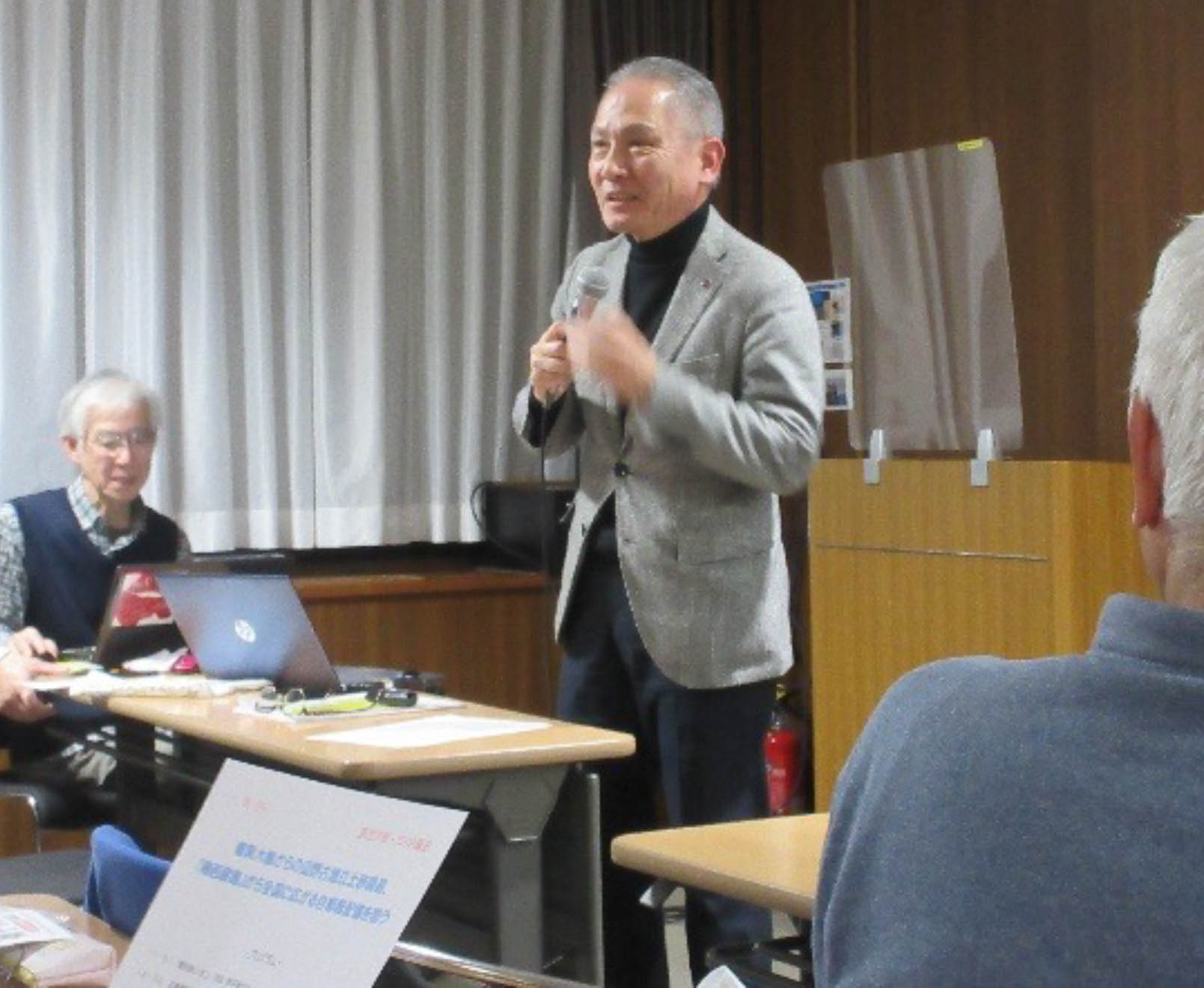 第二部は、平和フォーラム共同代表の染裕之さんが「どの故郷にも戦争に使う土砂は一粒もない!」と題して、平和運動と日本の軍事化の現状について話しました。