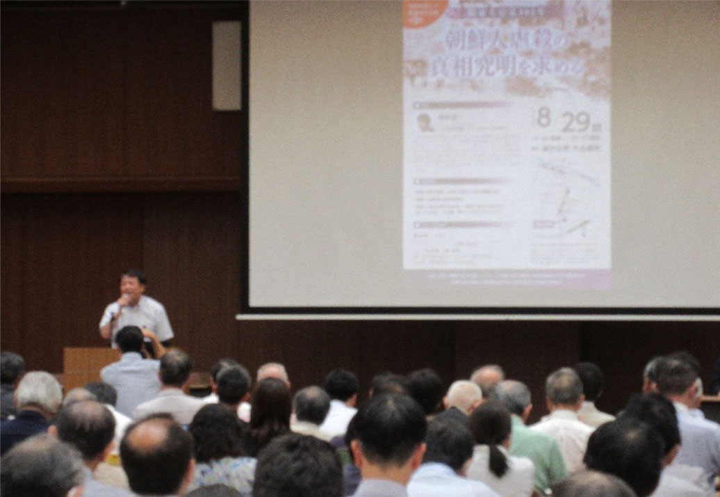 関東大震災から102年目を迎える8月29日、連合会館大会議室で「朝鮮人虐殺の真相究明を求める集会」が開催され、250名が参加し会場を埋めました。