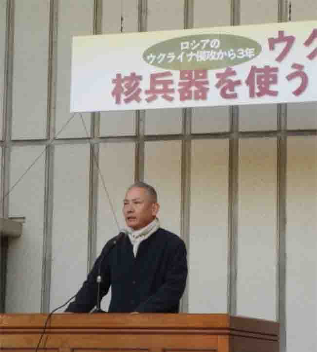 集会の冒頭主催者挨拶で総がかり行動実行委員会共同代表の染裕之さんは「トランプ米大統領が軍事的圧力を背景にした『力の外交』で国際社会を翻弄している。ウクライナの頭越しにロシアと停戦交渉を進める姿勢に欧州も反発している」と指摘。原子力資料情報室の松久保肇さんはウクライナの現状について報告しました。