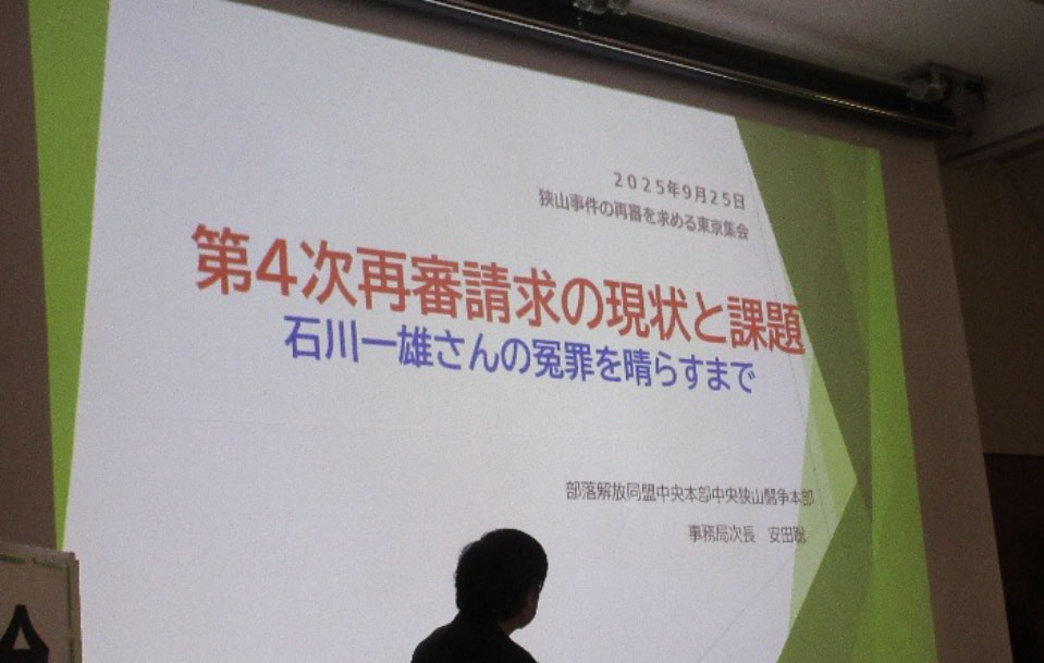 9月25日木曜日、午後6時半から墨田区の曳舟文化センターで「狭山裁判の再審を求める東京集会」が開催されました。集会には、狭山東京実行委員会に結集する労働組合や解放同盟など各組織から170名余りが結集しました。