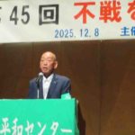 2025年12月8日 / 最終更新日 : 2026年1月15日 arcp-peace 集会 かつてない日中間の緊張が高まる中「不戦を誓う三多摩集会」が開かれる~沖縄と東京はつながっている!~ 日本軍による真珠湾攻撃で対米戦争に突入した12月8日を「不戦を誓う日」として第45回不戦を誓う三多摩集会が、国分寺いずみホールで開催され、180名の市民・労働者が参加しました。 三多摩平和運動センター土岐雅人議長は「 […]