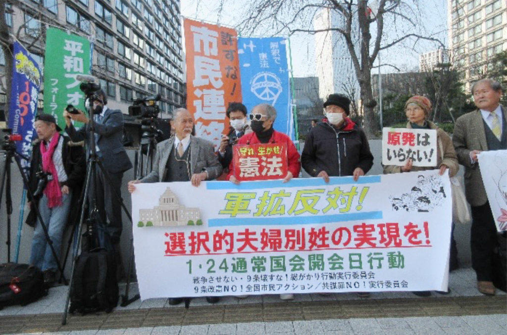 「軍拡反対!選択的夫婦別姓の実現を!」通常国会開会日行動