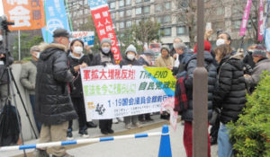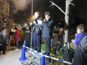 行動の冒頭、主催者を代表して一坪反戦地主会関東ブロックの青木初子さんが「沖縄の大会に呼応する本東京行動に240団体以上の賛同を頂き感謝する。米兵による性暴力事件を日本政府は隠蔽した。沖縄の問題は、日本の問題だ。なかったことにはさせない。こうしたことを放置する日本国民に怒りをぶつけたい。なまからど え~びんど まんじゅい ちばらなやーさい」と挨拶しました。