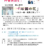 2026年1月15日 / 最終更新日 : 2026年1月15日 arcp-peace 2026年2月11日 一人芝居「石蕗の花~石川一雄 短歌に託して~」 2月11日 午後2時開場:2時半開演 千代田図書館地下1階コンベンションホール 一人芝居「石蕗の花~石川一雄 短歌に託して~」 入場料500円 チラシはこちらから
