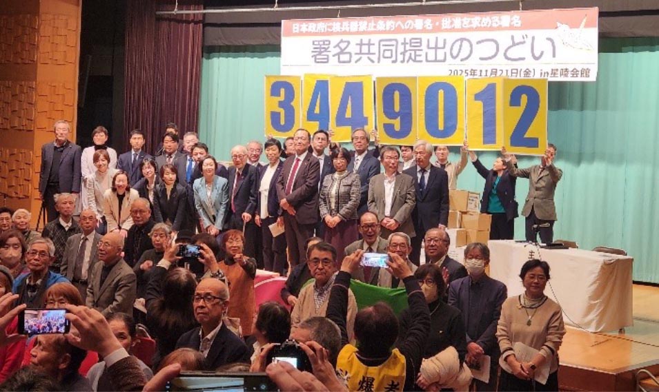 11月21日(金)14時00分より星稜会館ホールにおいて、日本被団協の呼びかけにより原水禁が協力する日本政府に核兵器禁止条約の署名・批准を求める署名「共同提出のつどい」が開催され、311人が参加しました。