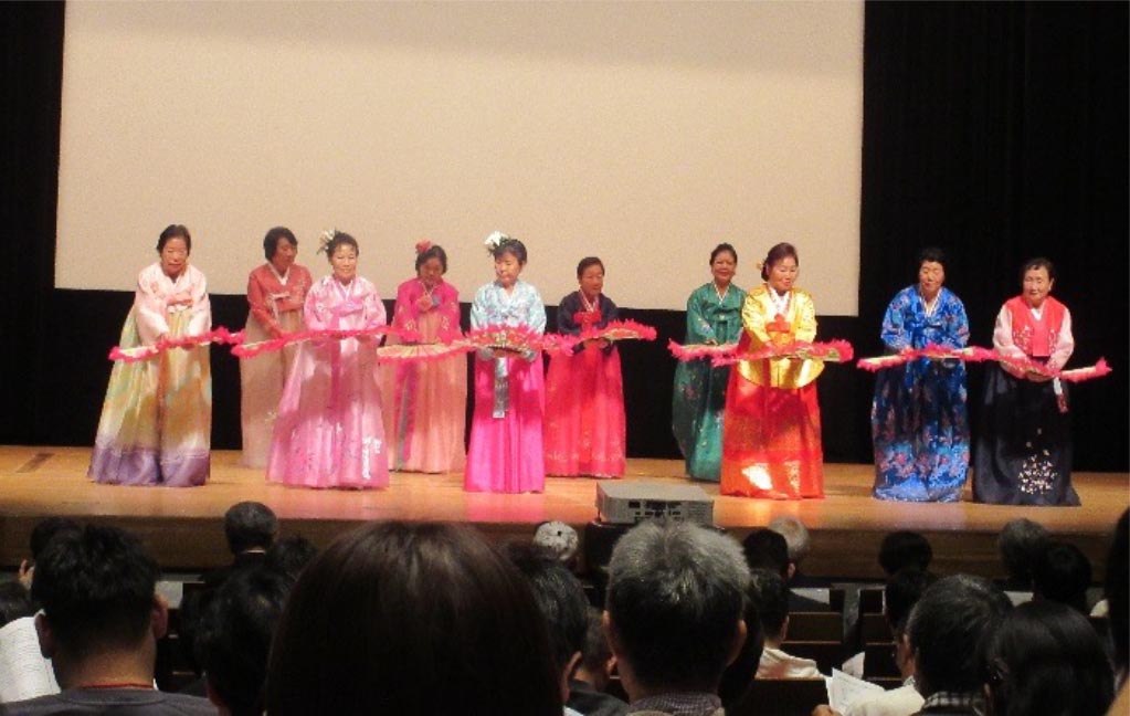 在日高齢者交流クラブトラジの会による歌と踊り
